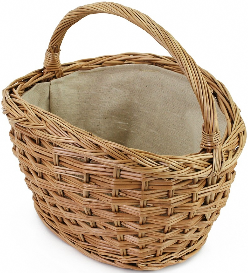 Each shopping basket features sturdy folding wicker handles secured with interlocking metal eyes, along with an attractive, removable linen liner. The liner not only adds even more charm, but it also helps protect delicate items and can be easily removed and washed for convenience.