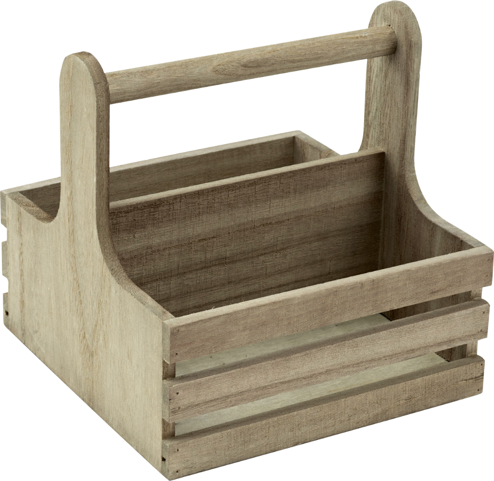 Crafted from lightweight, durable wood and finished in a modern grey wash, the carrier features two well-sized compartments. Each section can hold two small bottles or jars, or a generous selection of sauces, sachets, or condiments, making it both functional and adaptable for a variety of uses. Its stylish design ensures it looks great while keeping items organised and easily portable.