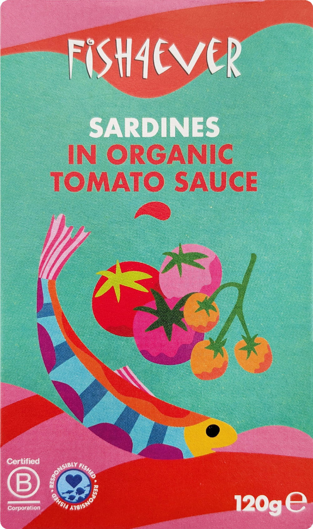 Sardines in Organic Tomato Sauce 120g from Fish 4 Ever.