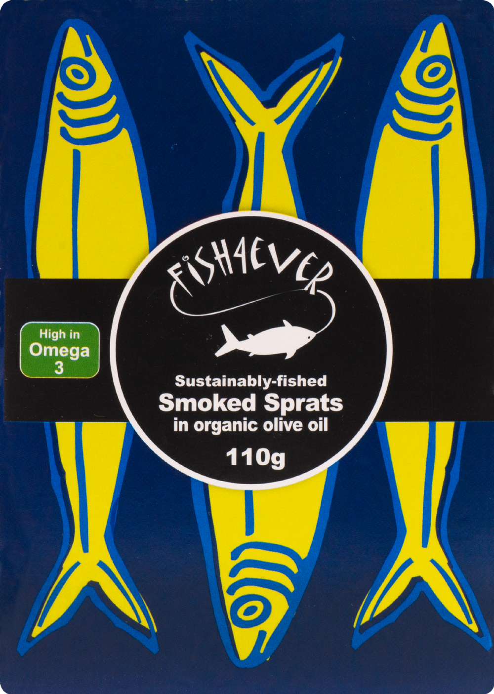 Smoked Sprats in Organic Olive Oil 110g from Fish 4 Ever.