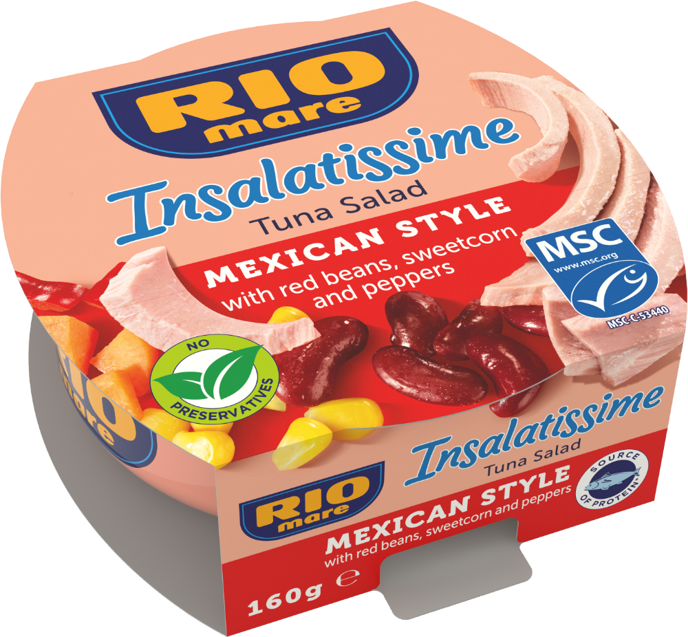 Perfect for anyone looking for delicious and balanced ready-to-eat meals.The unique flavour of Rio Mare tuna expertly combined with kidney beans and spices. Ready to eat any time thanks to the stay-fresh packaging – with no added preservatives. With a Mexican twist this salad is ideal for anyone who likes strong flavours – the taste of tuna enhanced with a clever combination of vegetables and spices. MSC certified.