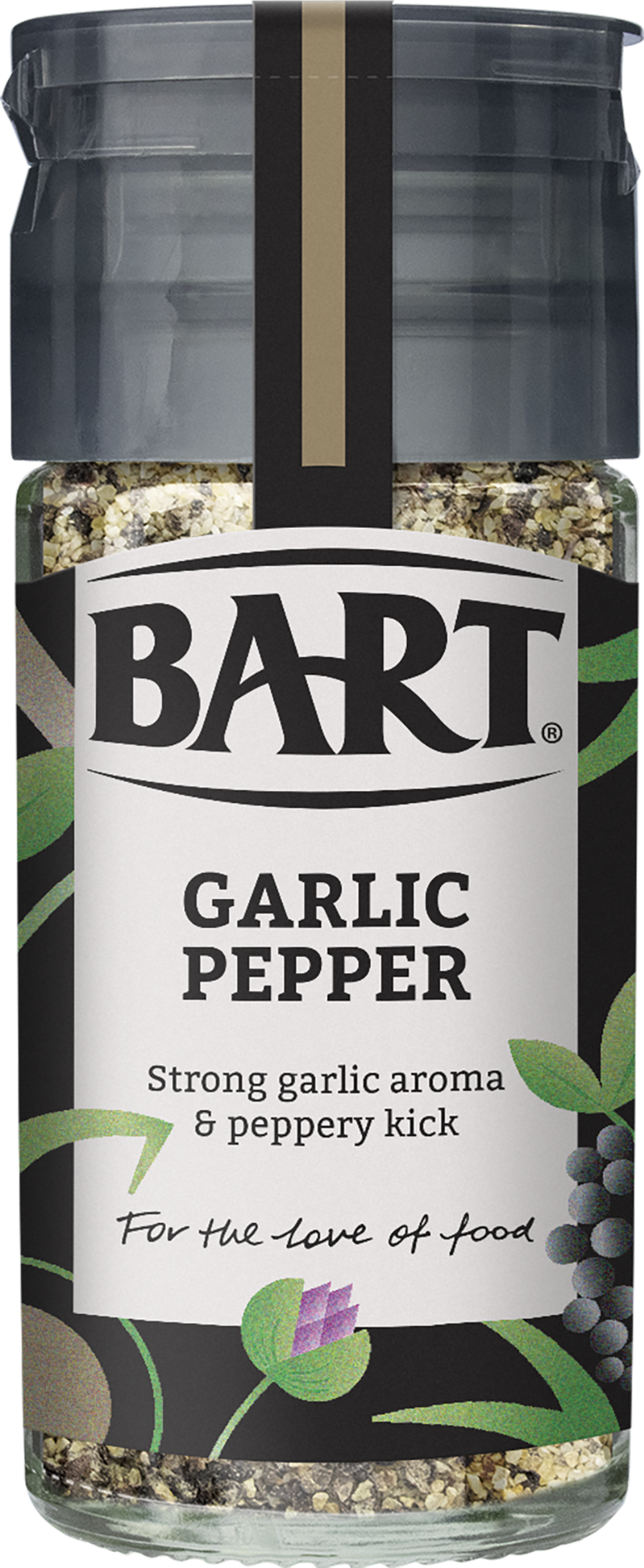 Garlic and pepper combines to make a delicious seasoning. It works particularly well with red meats; rub into steaks before grilling or barbecuing for a complete flavour without the mess.