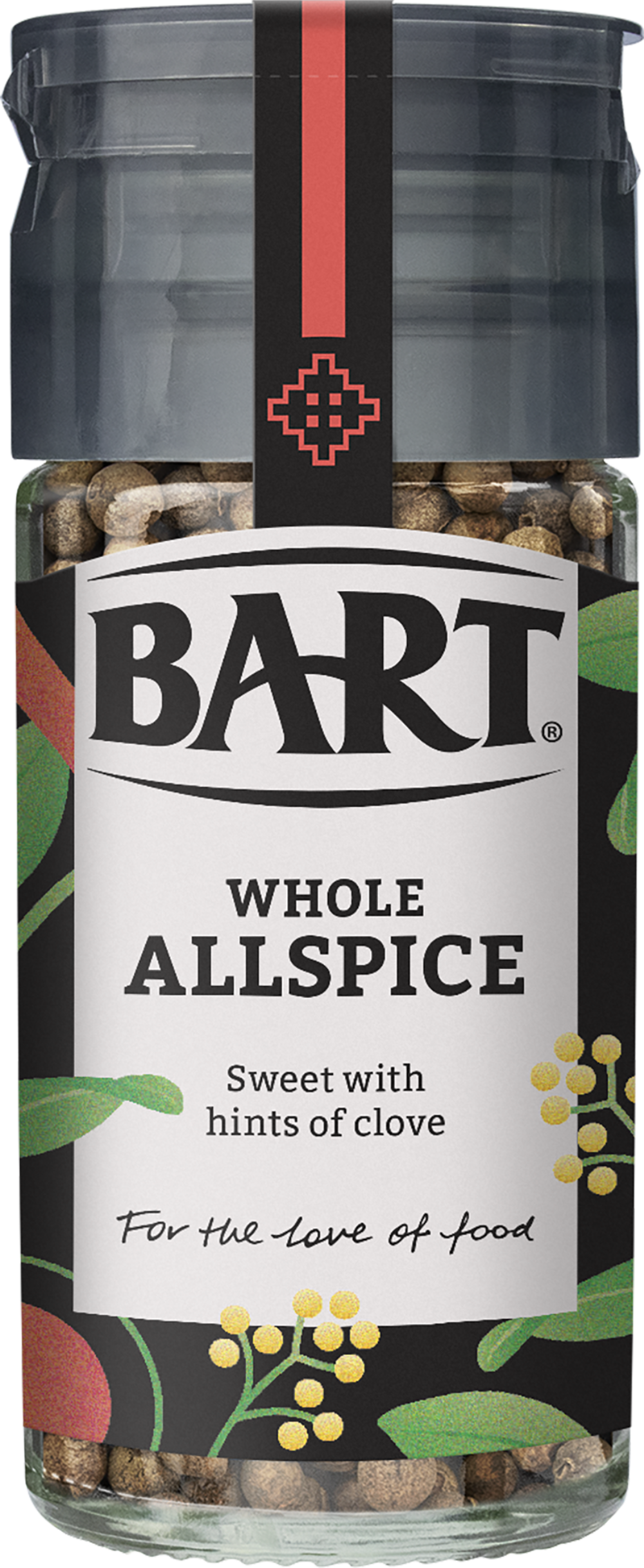 Native to Latin America, Allspice is the berry of an evergreen tree. The Mayans and Aztecs used Allspice in their cooking and to treat a variety of ailments. A warming fragrant aroma with flavours of cinnamon, nutmeg and cloves, it is a versatile spice that can be used to flavour both sweet and savoury dishes. Adds a sweet, spicy twist to caramelised apple cheesecake, or drop into the water of a boiling ham and simmer for the flavours to be absorbed