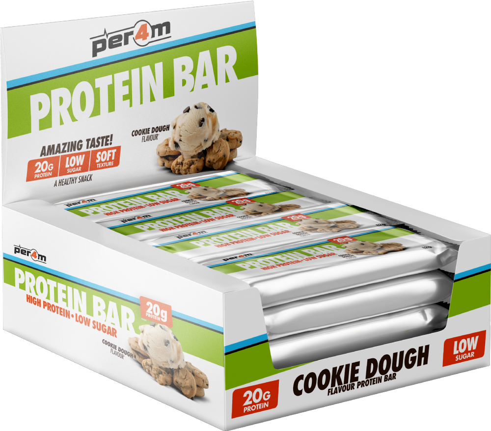 Introducing the Per4m Cookie Dough Protein Bar – a luxurious blend of rich, gooey textures and indulgent flavours. Inside you'll find a soft cookie dough centre, packed with chunks of decadent cookie pieces and a smooth layer of low-sugar caramel, wrapped in a silky milk chocolate coating. A taste so irresistible, it’s hard to believe it’s a protein bar. Each bar is loaded with 20g of premium protein to fuel your body and just 200 calories, making it the perfect choice for those who want to stay on track without sacrificing taste. Low in sugar, this bar is ideal for anyone focused on their nutrition while craving something indulgent. Perfect for life on the go, our Cookie Dough Protein Bar fits seamlessly into your routine. Enjoy it as a quick pick-me-up between meetings, as a post-workout recovery snack, or as an evening treat when cravings strike. It’s your guilt-free answer to sweet satisfaction. With the Per4m Cookie Dough Protein Bar, you get the best of both worlds: a delicious snack and a protein-packed powerhouse. Fuel your day and treat your taste buds with a bar you’ll love from the very first bite.