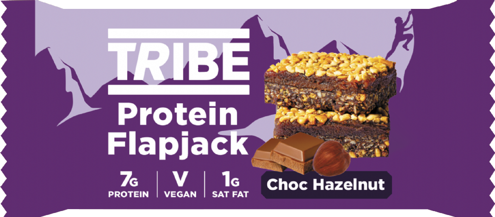 The TRIBE Protein Flapjack is a great-tasting natural plant energy bar to fuel your everyday adventures. It has three layers; a vegan, gluten-free flapjack with a choc hazelnut layer and a hazelnut topping. Discover the Force of Nature.