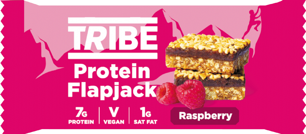 The TRIBE Protein Flapjack is a great-tasting natural plant energy bar to fuel your everyday adventures. It has three layers; a vegan, gluten-free flapjack base with a raspberry date layer and a peanut topping. Discover the Force of Nature.