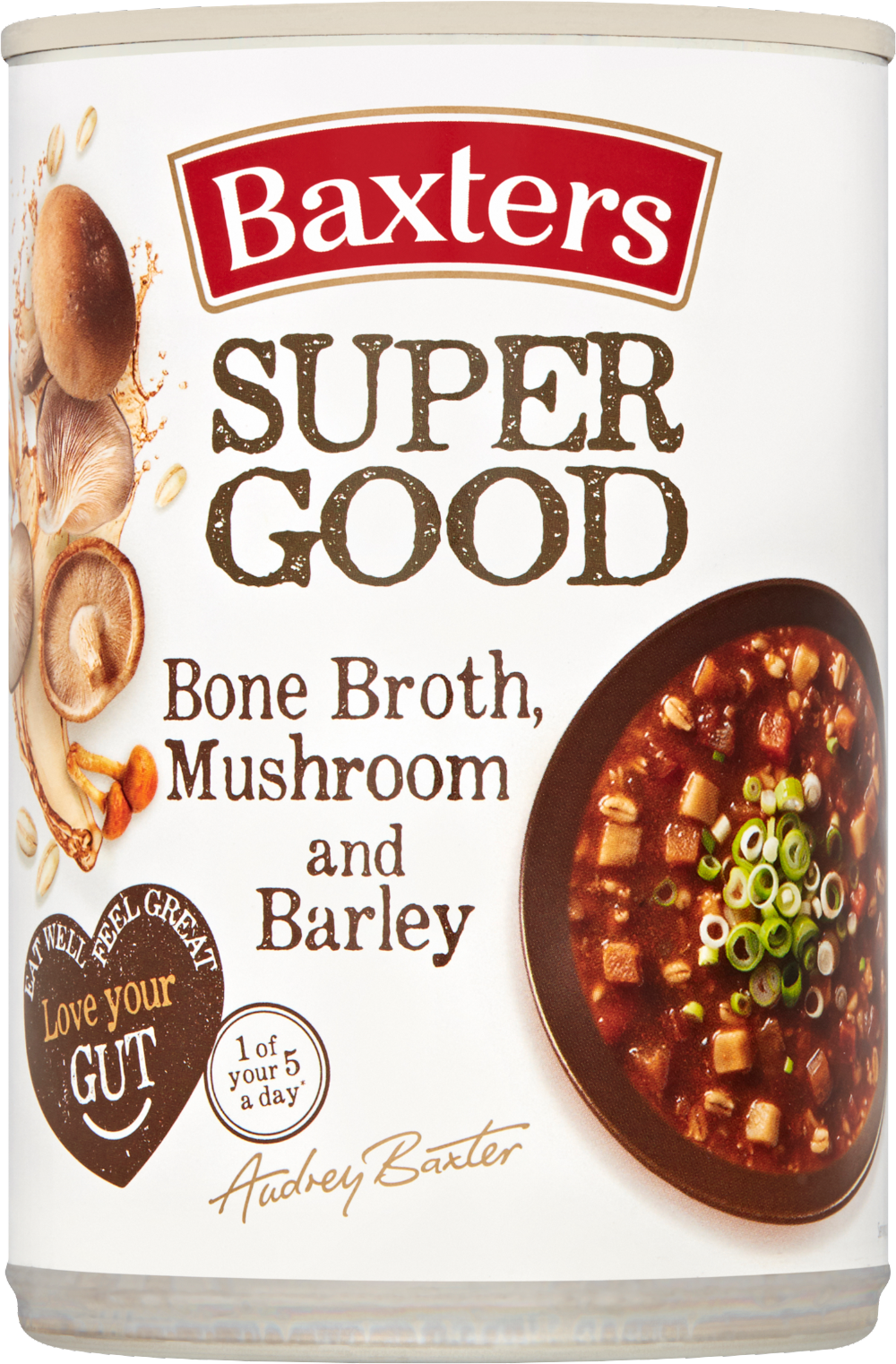 Super Good - Bone Broth, Mushroom & Barley 400g from Baxters.