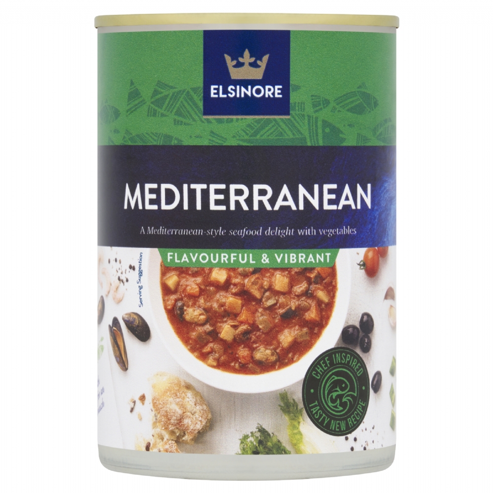 Water, Vegetables (Potato, Onion, Green Bell Pepper, Fennel, Carrot, Black Olives, Garlic), Tomato Paste, Alaska Pollock (Theragra chalcogramma) (Fish) (6%), White Wine, Tomato, Mussels (Mytilus chilensis) (Mollusc) (3%), Shrimp (Pandalus borealis) (Crustaceans) (2.5%), Rapeseed Oil, Corn Starch, Bouillon (Salt, Yeast Extract, Modified Potato Starch, Sugar, Onion, Spices, Citric Acid), Basil, White Pepper.