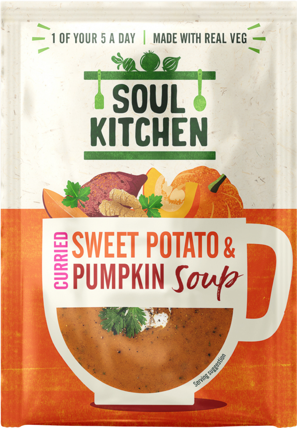 Soul Kitchen's soups are jam-packed with real veg and the finest ingredients for tasty goodness and convenience without compromise. They contain no nasties, leaving more room for the good stuff. Packed with essential nutrients and delicious flavour from real sweet potato, pumpkin, carrot; each sachet offers the perfect blend of warmth and Indian inspired spices. Simply add hot water and enjoy the goodness. 1 of your 5 a day and proudly made in the UK.