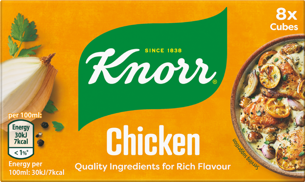 Next time you cook chicken, try adding a Knorr Chicken Stock Cube. Made with carefully selected herbs and spices, it will enhance the natural flavour of your fresh ingredients. For a tasty twist, add to soups, stews, risottos and more.
