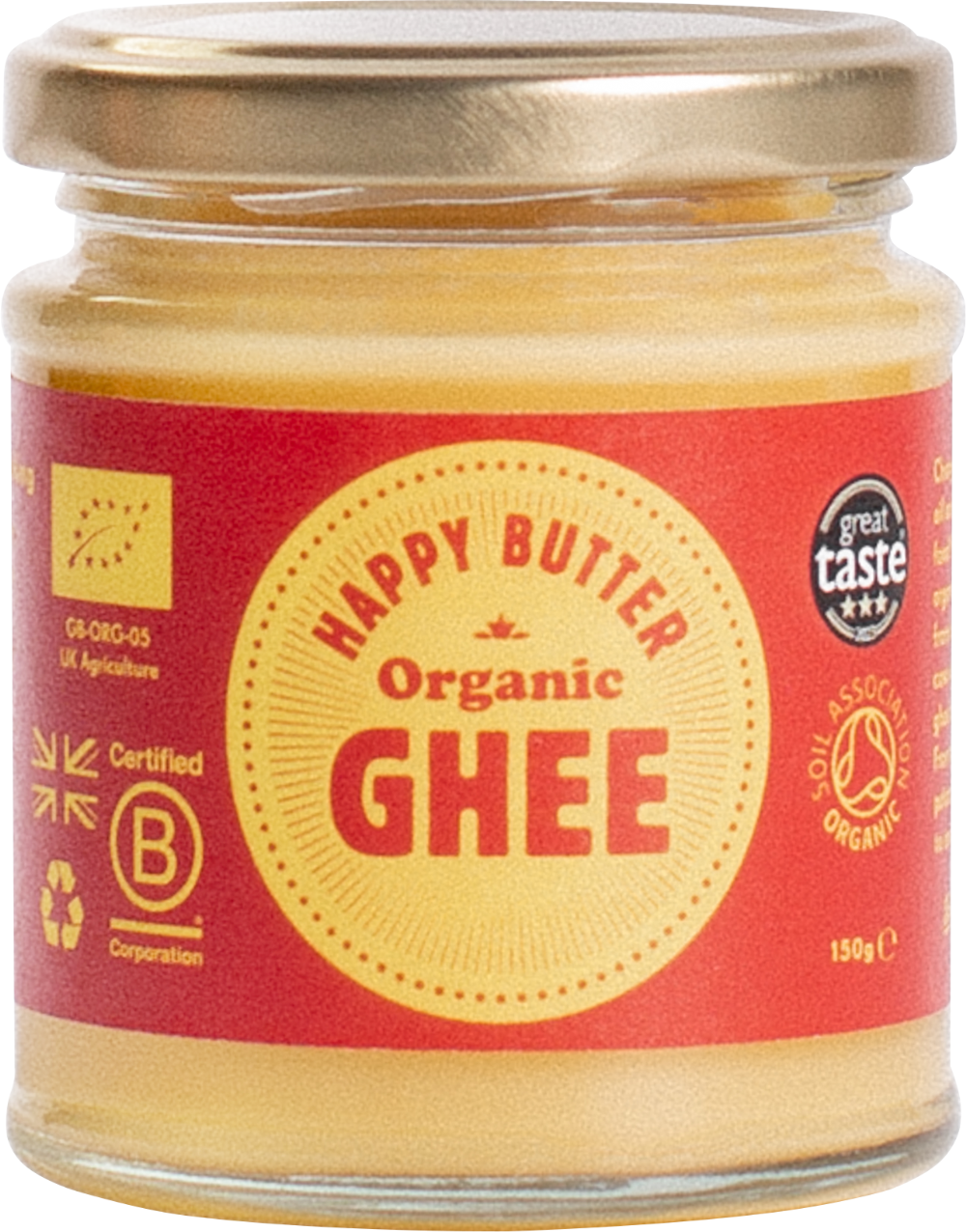 Organic grass-fed artisan Ghee made with delicious organic butter in Devon. A delicious and healthy alternative to cooking oil.
