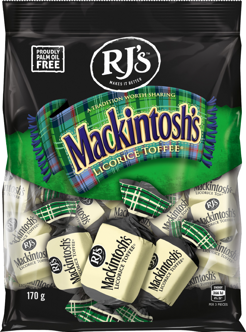 Generations of Kiwis have grown up loving the creamy taste of Mackintosh’s toffees, lets keep the tradition going. A deliciously creamy Mackintosh Licorice Toffee, everything you know and love about a Mackintosh Toffee now in a scrumptious Licorice flavour.