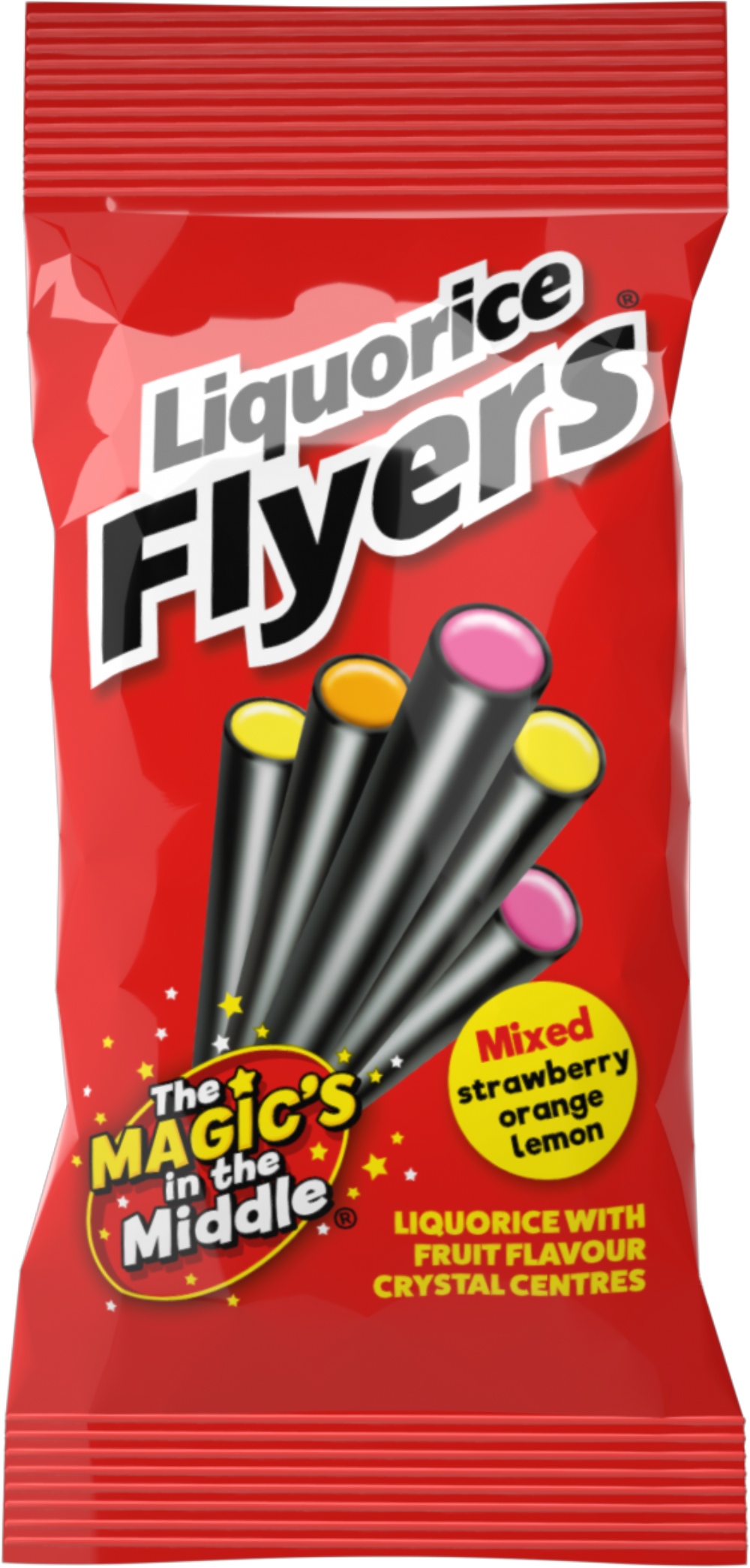 The original! Liquorice Flyers have been delighting lovers of liquorice since 1946. Delicious chewy liquorice containing fruit flavour crystal centres, makes for a unique eating experience that kids and adults alike will enjoy. The Magic's in the Middle!