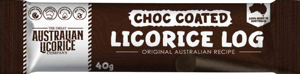 Choc Coated Licorice Log 40g from The Great Australian Licorice Company.