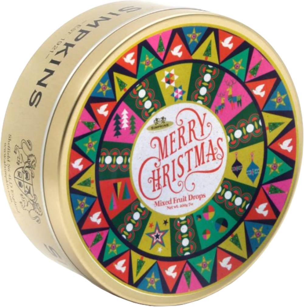 Simpkins Mixed Fruit Drops - Merry Christmas Pattern Tin 200g