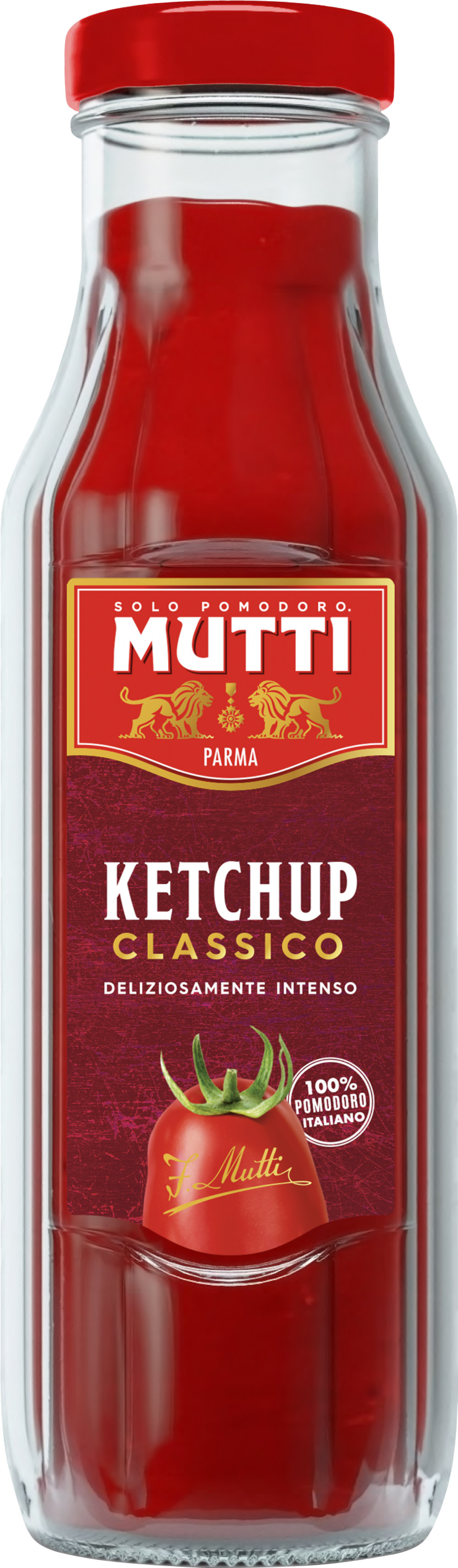Mutti ketchup is based on a classic Mutti recipe that celebrates the delicious taste and natural sweetness of 100% Italian, perfectly sun-ripened tomatoes It has an intensely sweet flavour, warm red colour and a naturally thick consistency. 2.2kg of fresh tomatoes goes into making 1kg of ketchup and the recipe uses no preservatives or thickeners.