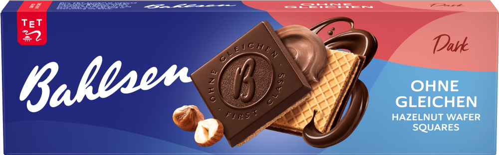 Perfectly square and pleasingly thick. Hazelnut praline cream on a thin wafer biscuit. Lightly roasted, smoothly ground and generously spread between light and crisp wafers – for a satisfyingly crunchy bite.